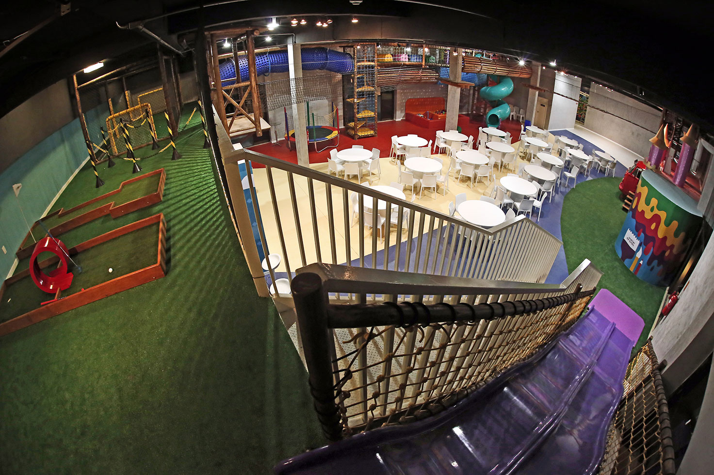 O mundo das crianças é coberto de encanto e magia. Através de suas brincadeiras, a criança expressa o seu mundo imaginário, elaborando, assim, seus sentimentos e experiências. Pensando nisso, surgiu o Mundo Meu, um Buffet infantil com variadas atrações lúdicas, uma mini vila cheia de cores, fantasias e brincadeiras, onde o mundo real e o imaginário se misturam. A aventura rola solta no campinho de futebol, nas pistas de mini golfe, tirolesa e no circuito de arvorismo.